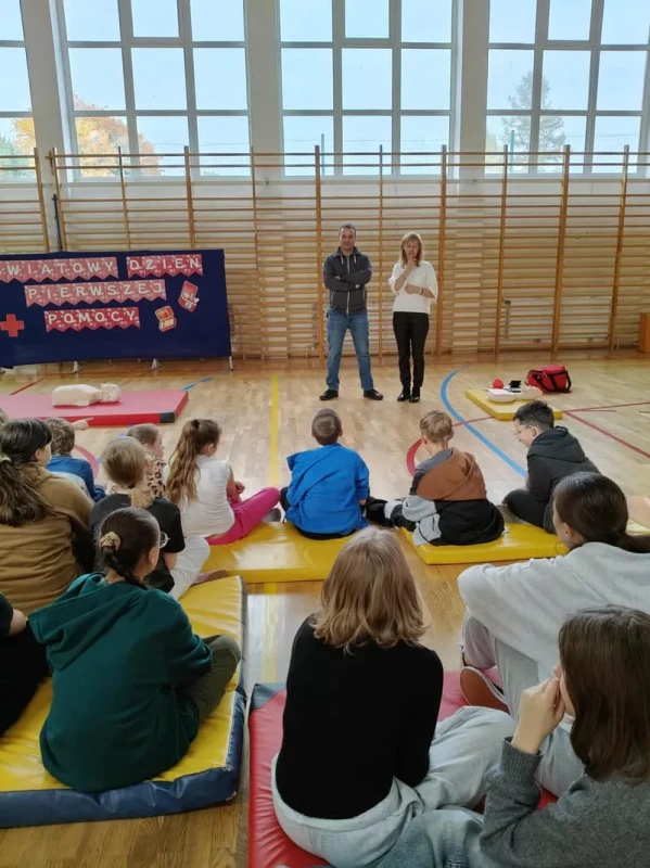 W dniu 16 października 2025 roku nasza szkoła wzięła udział w ogólnopolskiej akcji Bicia Rekordu w Pierwszej Pomocy, organizowanej przez Fundację Wielka Orkiestra Świątecznej Pomocy w ramach Programu Edukacyjnego "Ratujemy i Uczymy Ratować".