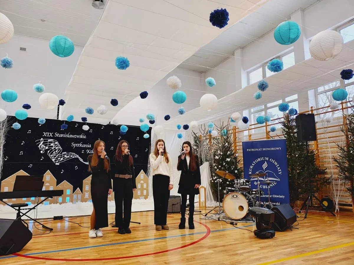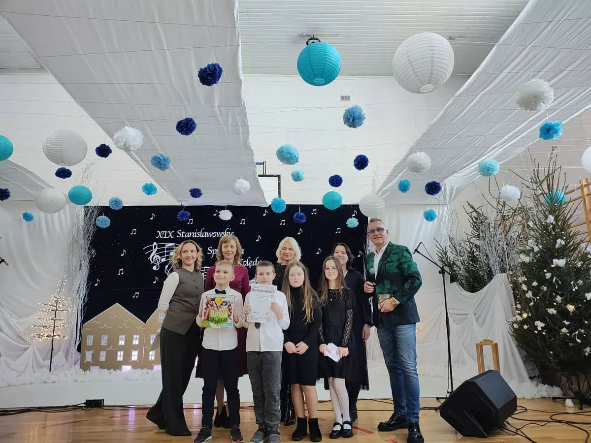 16 stycznia 2026 r. w naszej szkole było świątecznie, nastrojowo i gwarno. Wszystko za sprawą pięknej uroczystości - XIX Stanisławowskich Spotkań z Kolędą, które dostarczyły mnóstwa wzruszeń oraz wprowadziły magiczną, niepowtarzalną atmosferę. Przedsięwzięcie honorowym patronatem objął Kurator Oświaty w Lublinie pan Tomasz Szabłowski oraz Burmistrz Józefowa pan Roman Dziura, natomiast patronat medialny sprawowała Informacyjna Agencja Samorządowa. Naszą imprezę swoją obecnością zaszczyciło mnóstwo gości, wśród których byli: wicestarosta biłgorajski pani Beata Strzałka, Zastępca Burmistrza Józefowa pan Paweł Wiegan oraz radni powiatu biłgorajskiego: pani Barbara Wojciechowska oraz pan Henryk Paska.