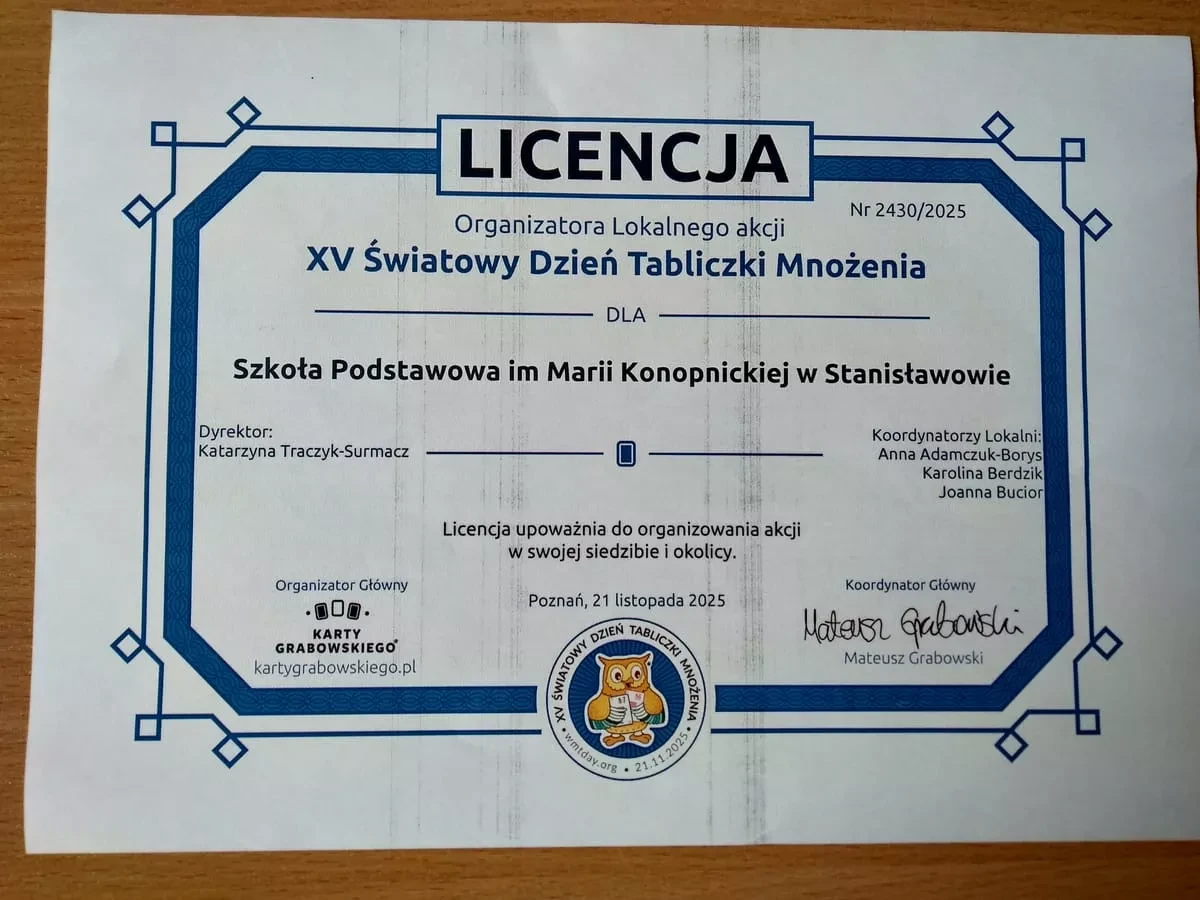 Na pamiątkę udziału w obchodach każdy uczeń otrzymał zakładkę do książki z tabliczką mnożenia, która będzie pomocną i praktyczną formą utrwalania wiedzy.