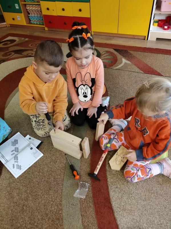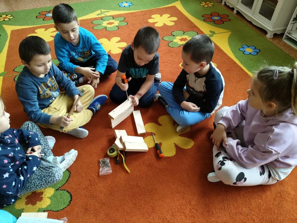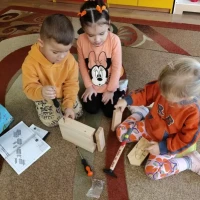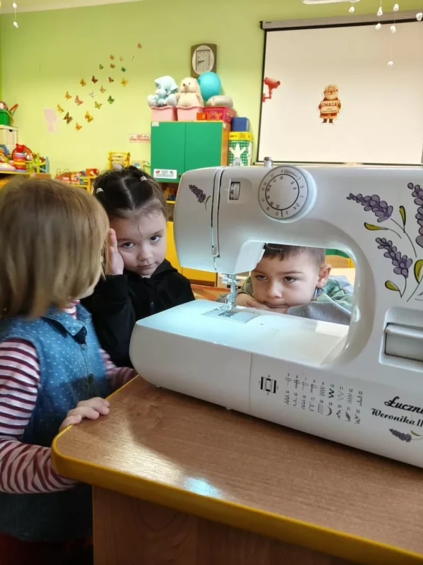 Przedszkolaki uczestniczyły również w zajęciach praktycznych. Przy pomocy nauczyciela zbudowały karmniki dla ptaków, poznając podstawowe narzędzia potrzebne do ich wykonania. Dzieci poznały także maszyny do szycia oraz samodzielnie uszyły swoje mini pluszaki. Zajęcia były ciekawe i angażujące, a zdobyte doświadczenia pomogły dzieciom lepiej zrozumieć otaczający je środowisko pracy.