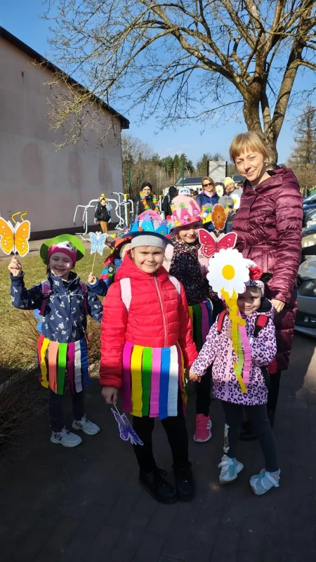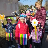 W czwartek nasza szkoła obchodziła pierwszy dzień wiosny. Uczniowie wraz nauczycielami tego dnia wybrali się na wiosenny pochód przystrojeni kolorowymi kwiatami, którego zakończeniem było ognisko. Wyprawa ta sprawiła wiele radości dużym i małym.
