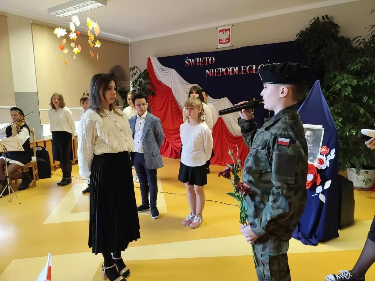Uroczystość rozpoczęła się wspólnym odśpiewaniem „Mazurka Dąbrowskiego” w ramach ogólnopolskiej akcji „Szkoła do hymnu”. Występom towarzyszył podniosły nastrój i poczucie dumy z bycia Polakiem. Podczas akademii recytowano wiersze patriotyczne, śpiewano znane pieśni żołnierskie i narodowe. Uczniowie zaprezentowali się w strojach stylizowanych na mundury żołnierzy z czasów walk o niepodległość, co dodało uroczystości wyjątkowego charakteru. Całość uświetniła gra na skrzypcach, która wprowadziła wszystkich w refleksyjny nastrój.