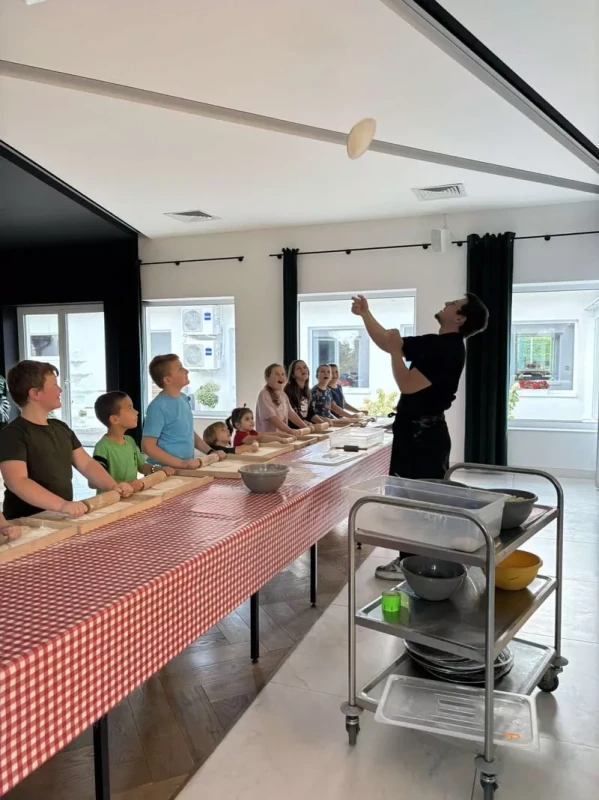 Zwieńczeniem naszej wycieczki były warsztaty robienia pizzy, podczas których Mistrz Pizzolo pokazał nam, jak krok po kroku powstaje ta popularna potrawa. Po zakończeniu warsztatów każdy uczestnik mógł skosztować własnoręcznie przygotowanej pizzy – była pyszna!